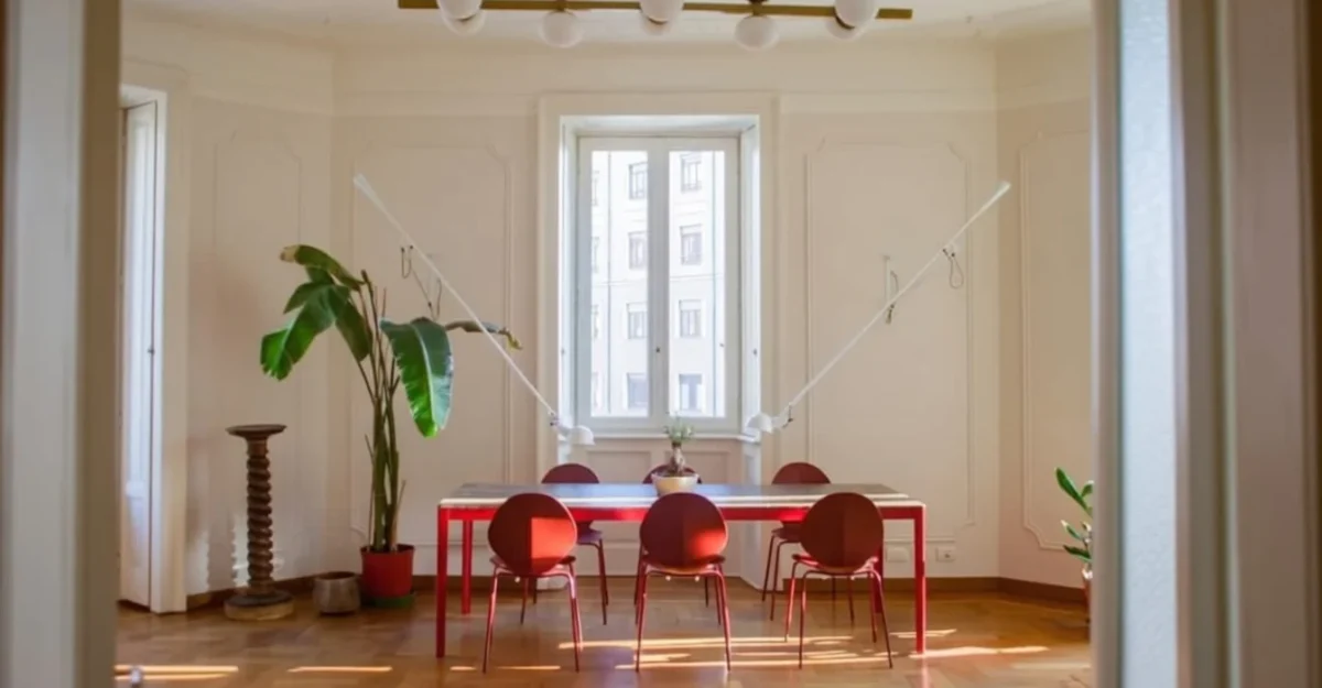 Pentru călătorii pasionați de design, anumite apartamente sunt adevărate muzee private. Un exemplu este „Design Central Milan Apartment”, o proprietate spațioasă care te transportă direct în anii ’70. Aici găsești toate elementele definitorii ale stilului italian din acea perioadă: accente metalice, nuanțe bogate de maro și linii geometrice. Decorul este completat de un candelabru din sticlă de Murano și scaune Marcel Breuer (care, e drept, nu sunt italiene, dar păstrează spiritul luxului), iar în living există chiar și un bar în stil vechi, perfect pentru un aperitivo acasă. Prețul pentru acest apartament cu două dormitoare și 2,5 băi, situat în zona Borgogna, pornește de la 541 de dolari pe noapte.