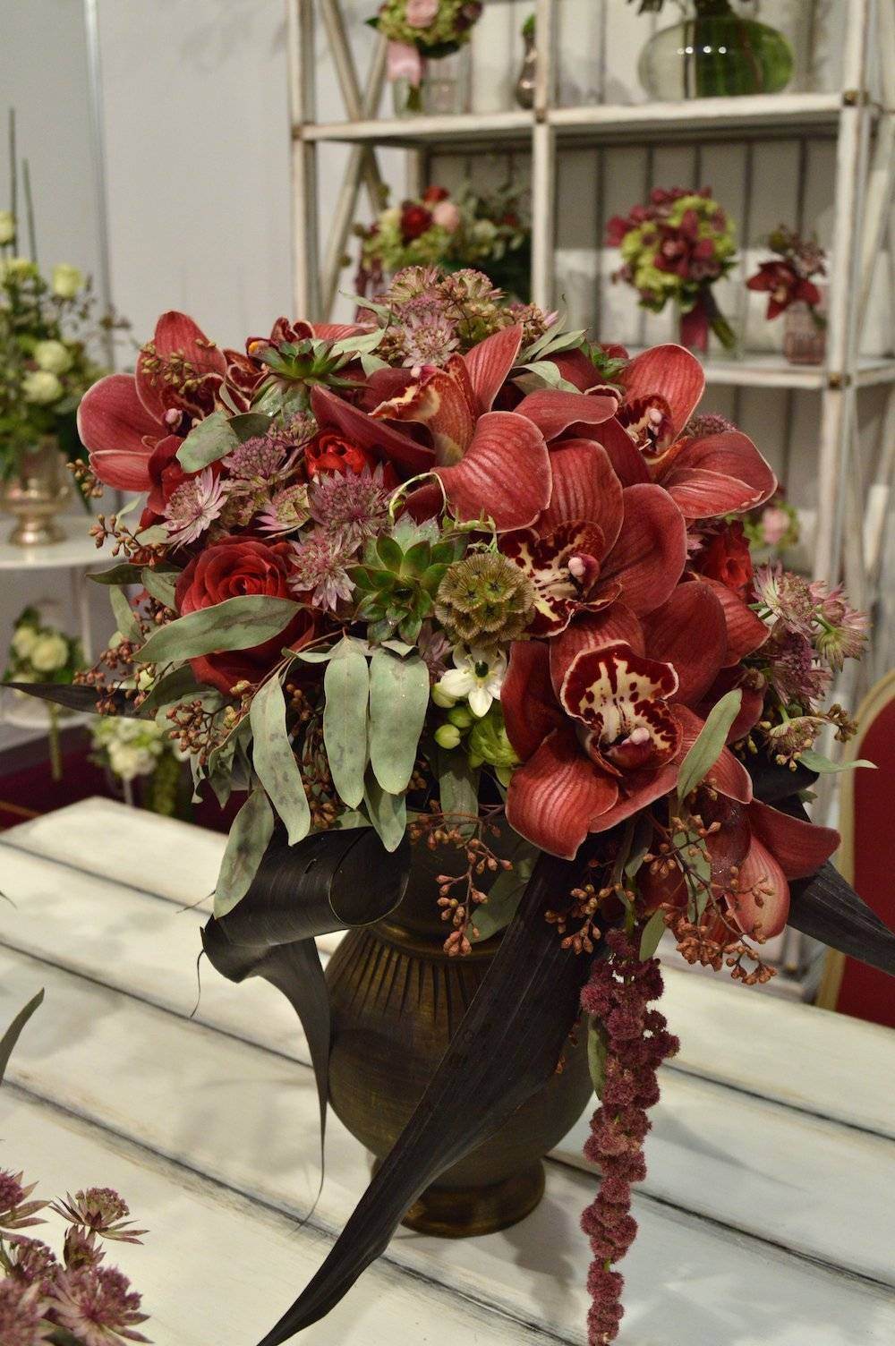 Trandafirii rosu marsala, roz prafuit, piersica, vanilie sau albi, vor fi o prezenta discreta dar remarcabila in aranjamentele de nunta. Designerii Floria ii combina cu creativitate, punandu-i in valoare alaturi de hortensii lime-roz, orhidee Cymbidium grena, frezii albe si o varietate de verdeata.