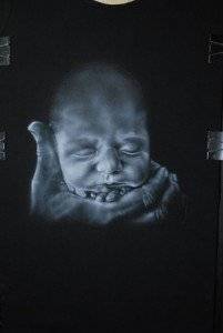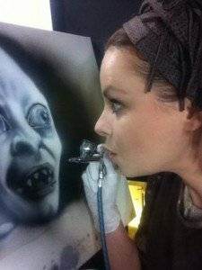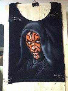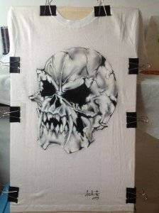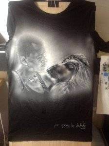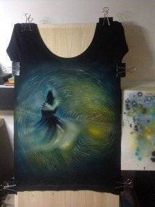 Mai precis, artista picteaza pe haine adevarate opere de arta realizate EXCLUSIV cu aerograful.