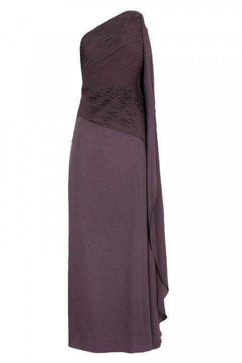 9. O rochie maxi, in stil elen, de culoare inchisa si cu un singur umar este iesita din comun, dar plina de eleganta in croiala ei doar aparent simpla.