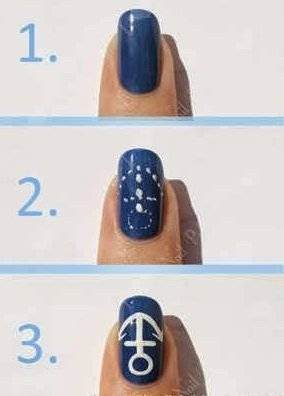 Pentru unghiile de inspiratie marinareasca ai nevoie doar de doua oje, una alba si una albastra, un lac de unghii transparent si un lac cu slipici, o pensula foarte subtire sau o scobitoare.