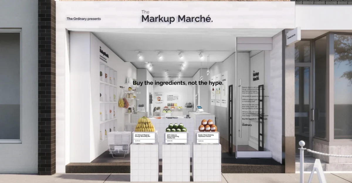 Brandul de beauty The Ordinary lansează un concept de pop-up inedit, The Markup Marché, pentru a expune adaosurile comerciale din industrie, care pot ajunge și la 700%. Vizitatorii din șase mari orașe vor intra într-un supermarket suprarealist unde o banană costă 175,90 de dolari, iar o nucă de cocos ajunge la 195,50 de dolari.