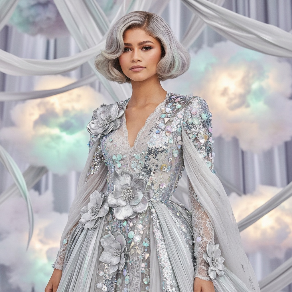 La Paris Fashion Week, Zendaya a atras toate privirile cu un look care a ieșit în evidență prin eleganță și simplitate. La prezentarea colecției Louis Vuitton pentru primăvara/vara 2026, actrița a purtat o rochie-blazer argintie cu detalii din blană albă și funde discrete. Însă coafura a fost elementul care a completat perfect ținuta.